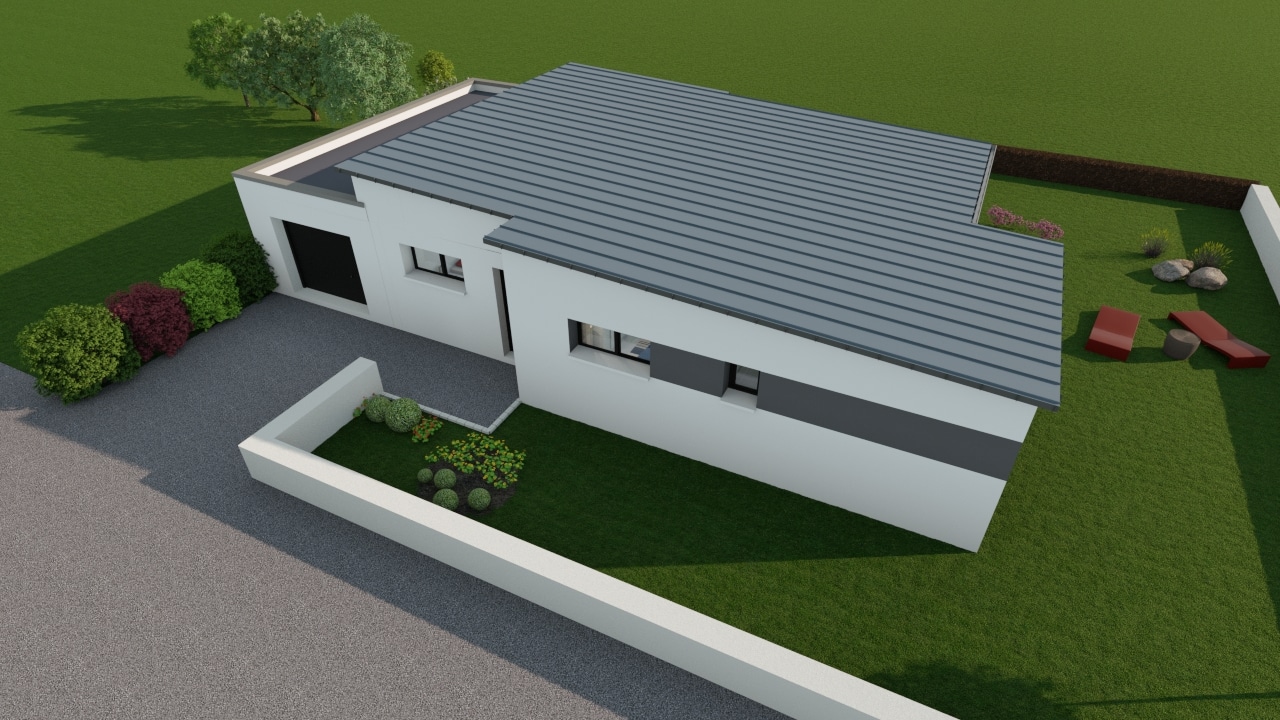 Unser Kunde teilte uns seine Wünsche mit: ein ebenerdiges Haus mit einem großen Wohnzimmer, drei Schlafzimmern, darunter eine Mastersuite, einem Abstellraum und einer Garage. Auch Helligkeit gehörte zu den wichtigen Kriterien. Unser Team schlug daraufhin ein maßgeschneidertes Projekt vor, um das Haus unseres Kunden einzigartig zu machen und seine Erwartungen 100% zu erfüllen. Um ihm bei der Planung zu helfen, boten wir ihm eine 3D-Ansicht seines zukünftigen Hauses an, mit Hilfe von unsere Designsoftware Cedreo.